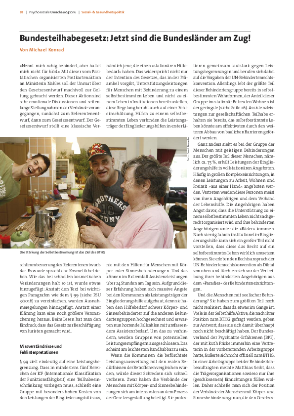 "Nennt mich ruhig behindert, aber haltet mich nicht für blöd." Mit dieser vom Paritätischen organisierten Postkartenaktionan Ministerin Nahles soll der Unmut über den Gesetzesentwurf machtvoll zur Geltung gebracht werden. Dieser Aktion sind sehr emotionale Diskussionen und seitenlange Stellungnahmen der Verbände vorangegangen, zunächst zum Referentenentwurf, dann zum Gesetzesentwurf. Den nun vorliegenden Gesetzesentwurf bezeichnet Dr. Michael Konrad in seinem Beitrag zur Psychosozialen Umschau 4/2016 als eine "Verschlimmbesserung des Referentenentwurfs".